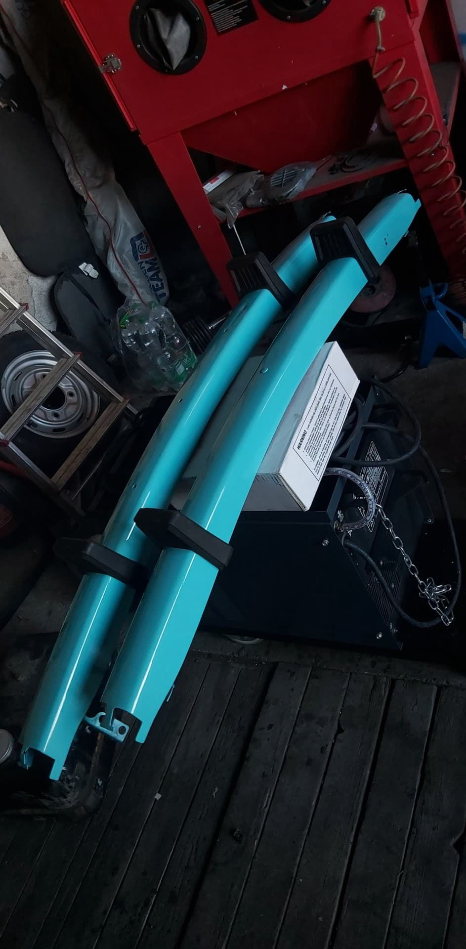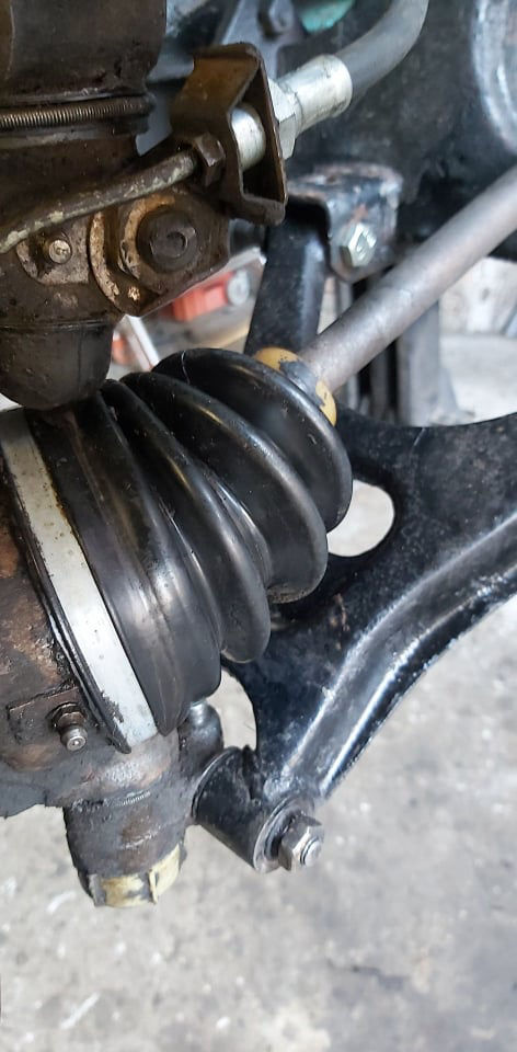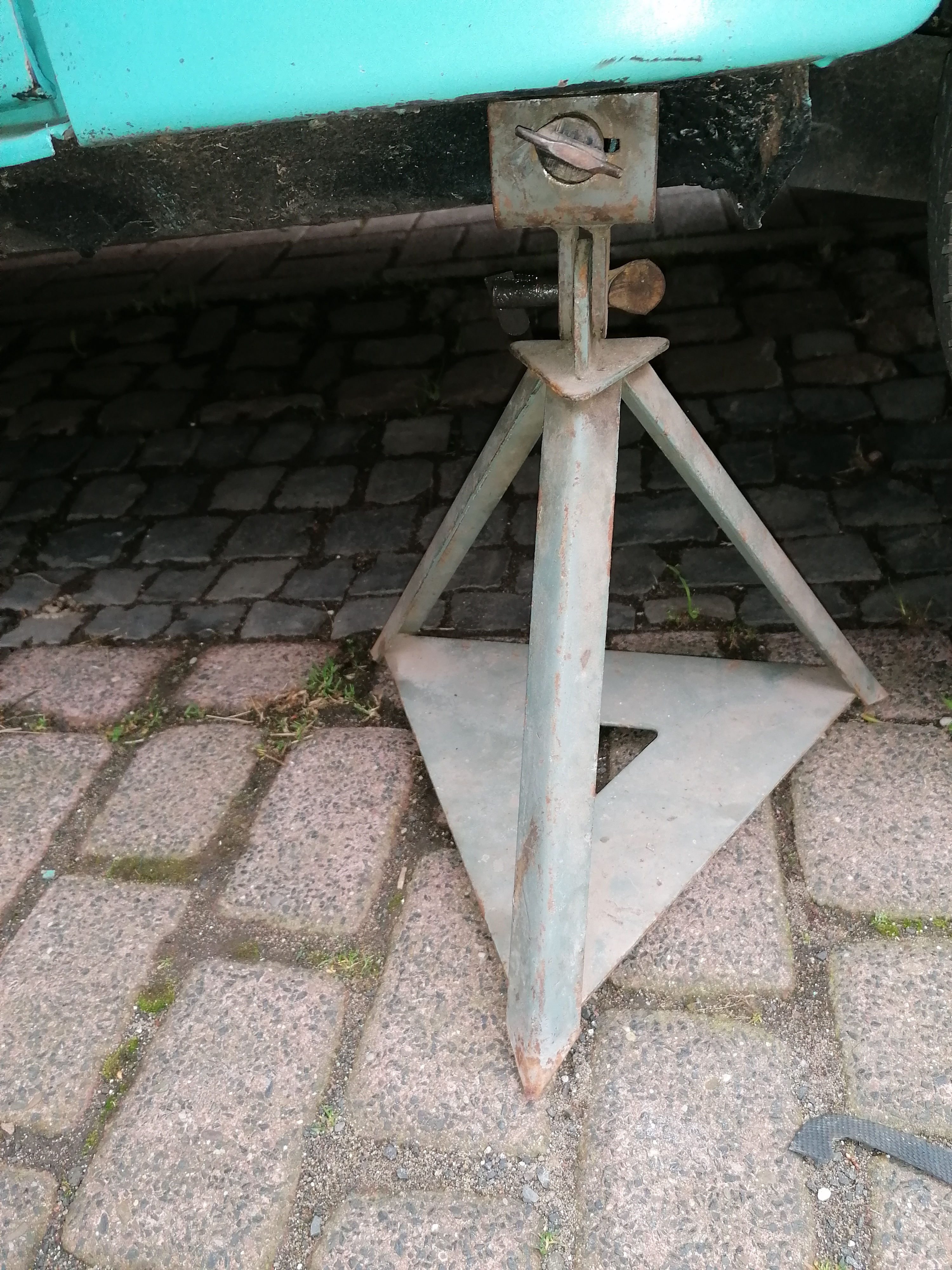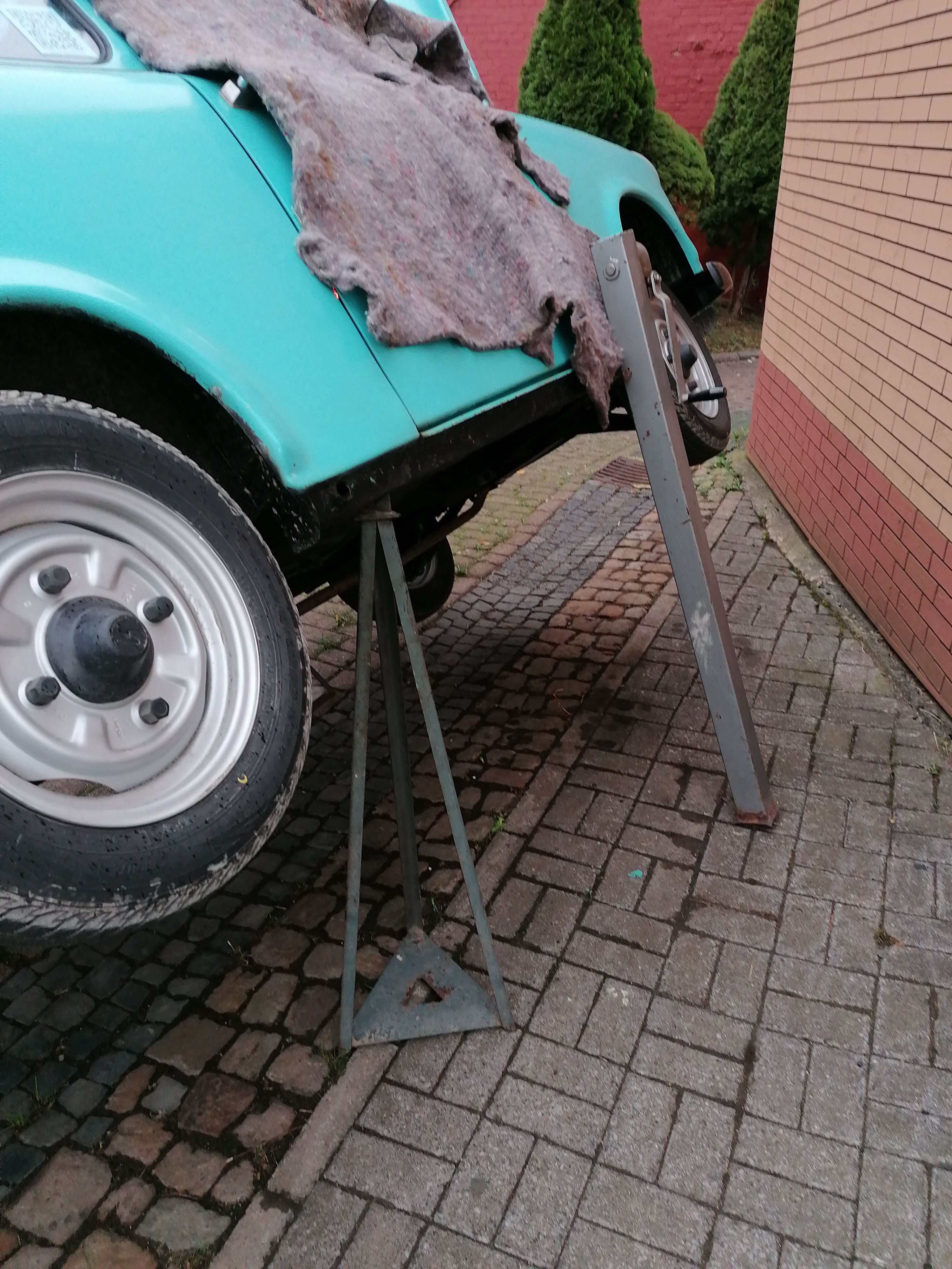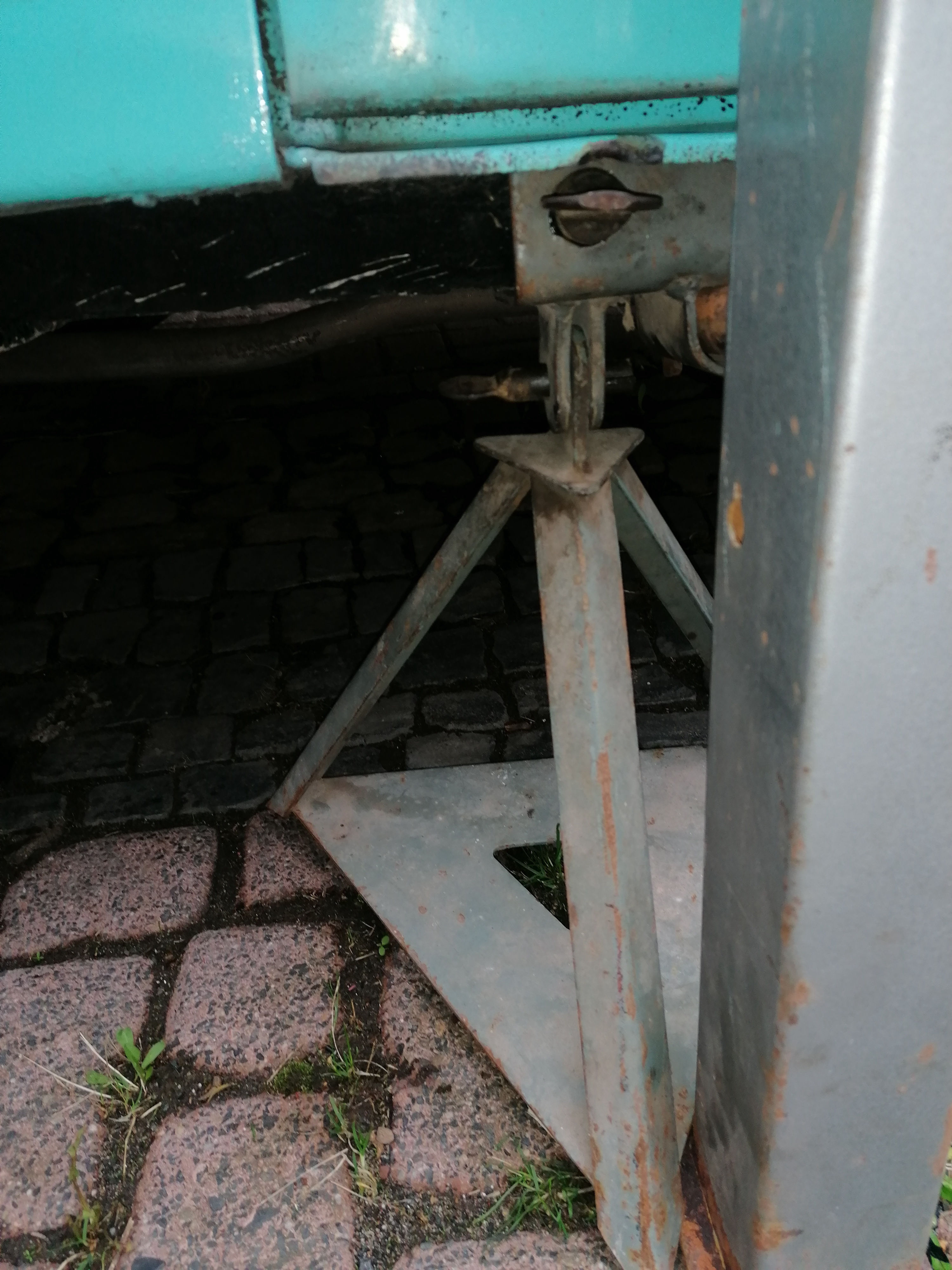 Wenn es hoch genug ist unbedingt den Stützbock unter den Schweller setzen. Achtet auf das nach außen stehende Bein.