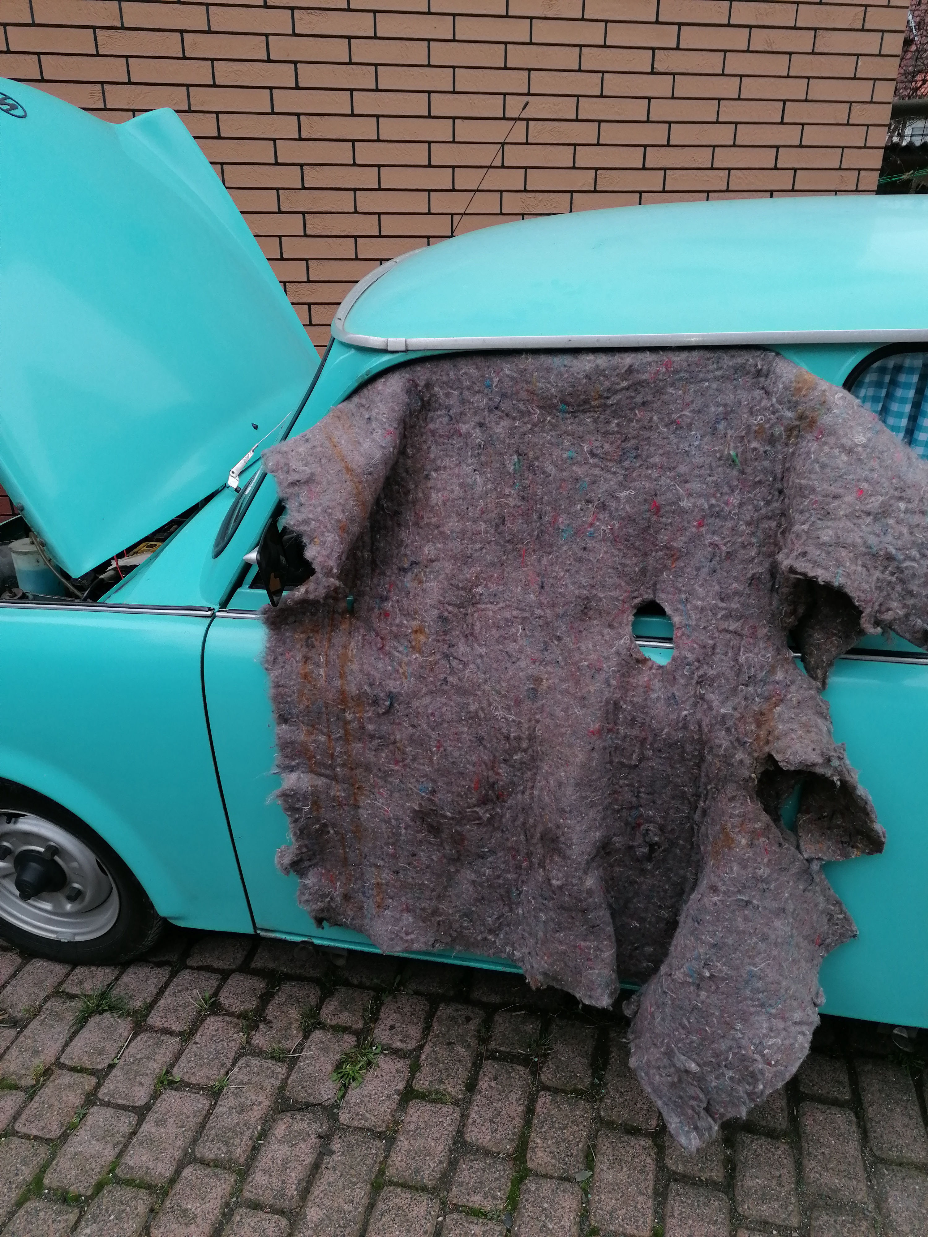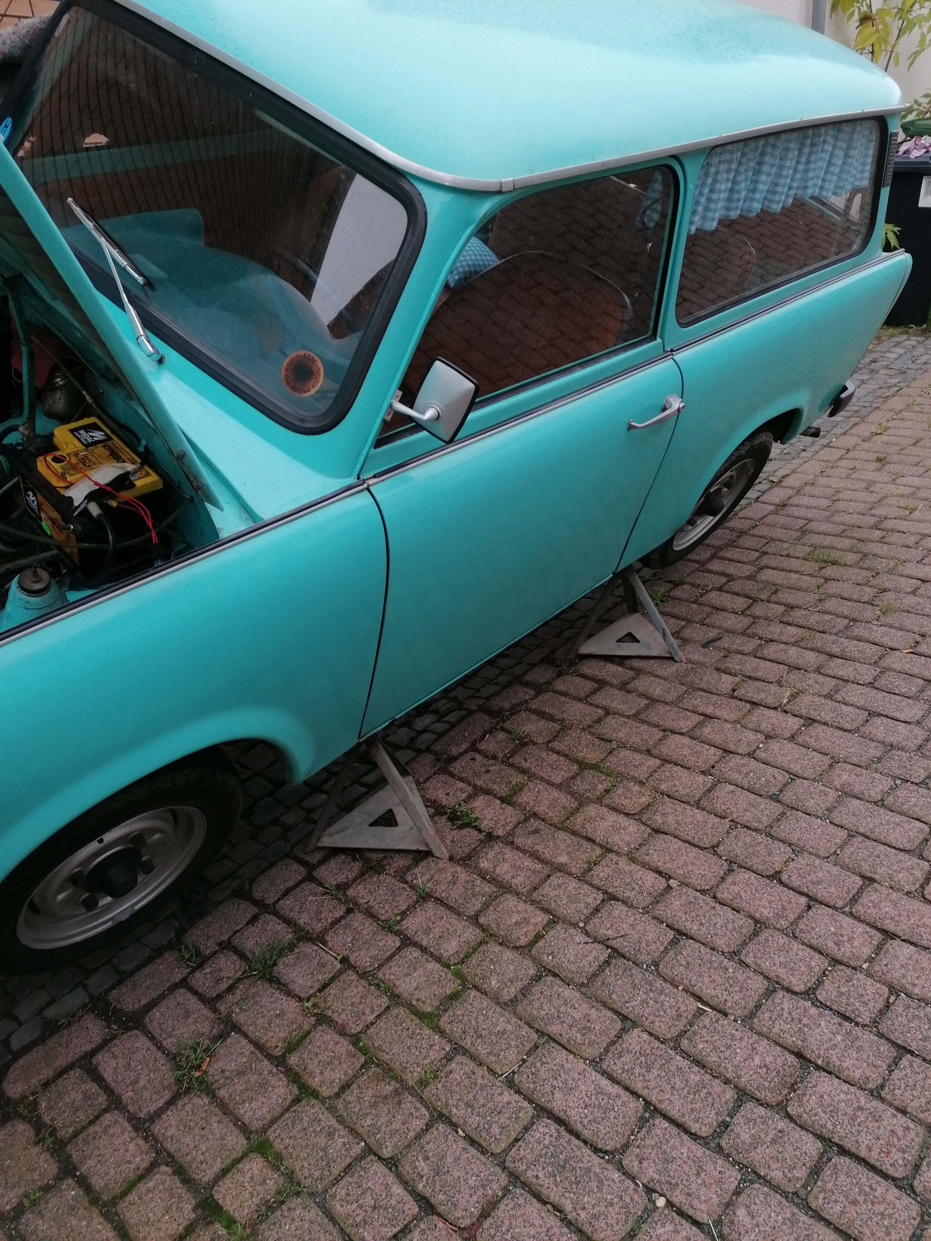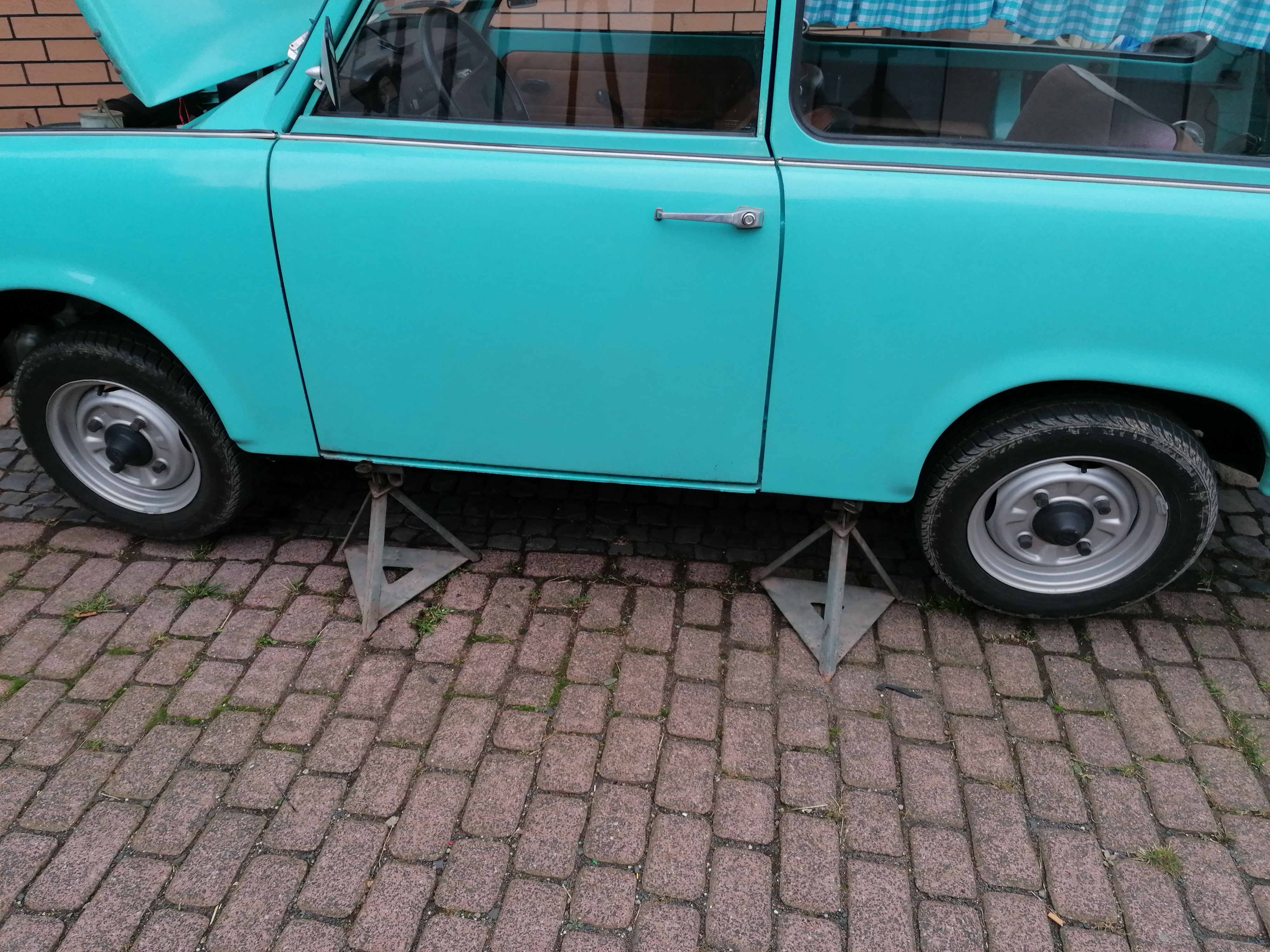 Bevor Ihr den Trabi auf die Seite dreht sollte der Tank nur noch zu 1/3 (ca.7,5l) befüllt sein