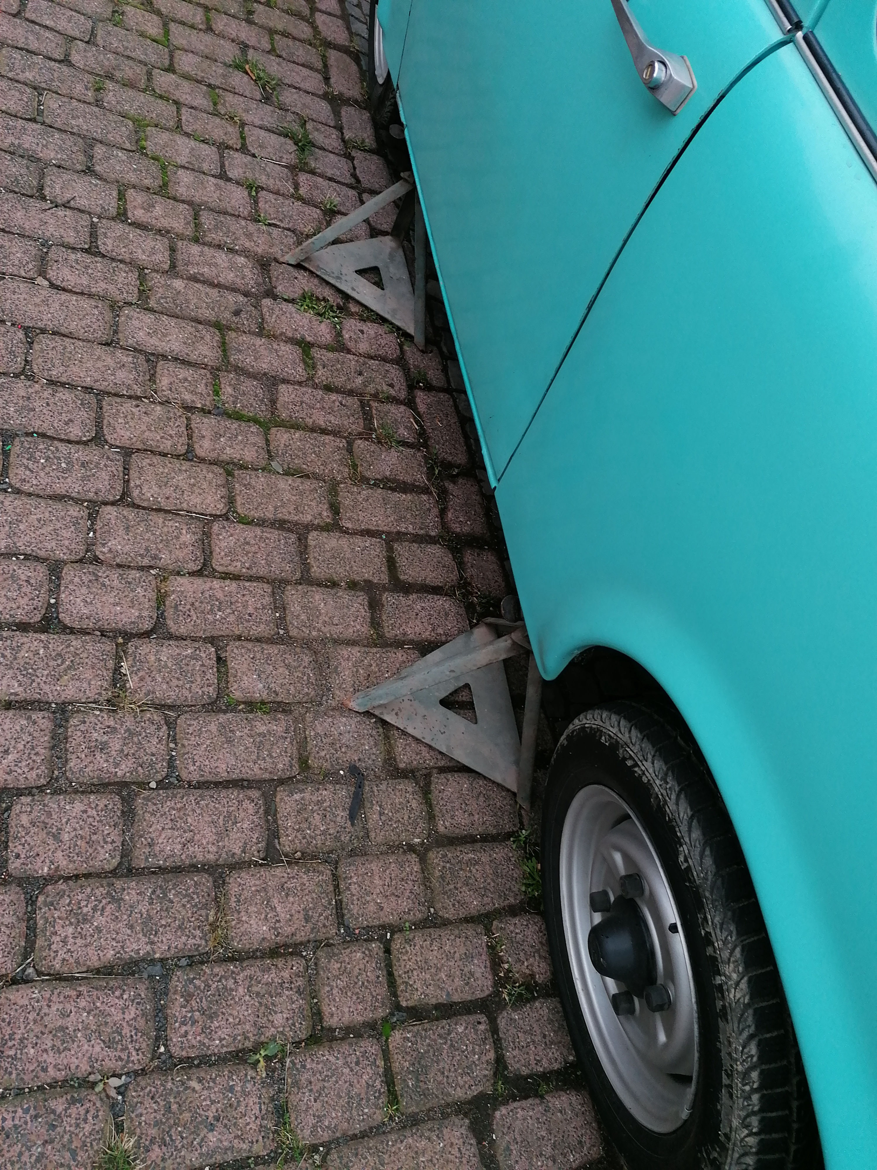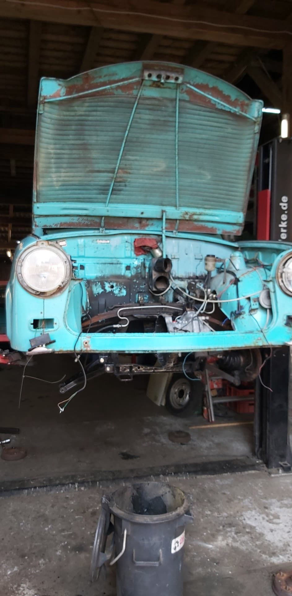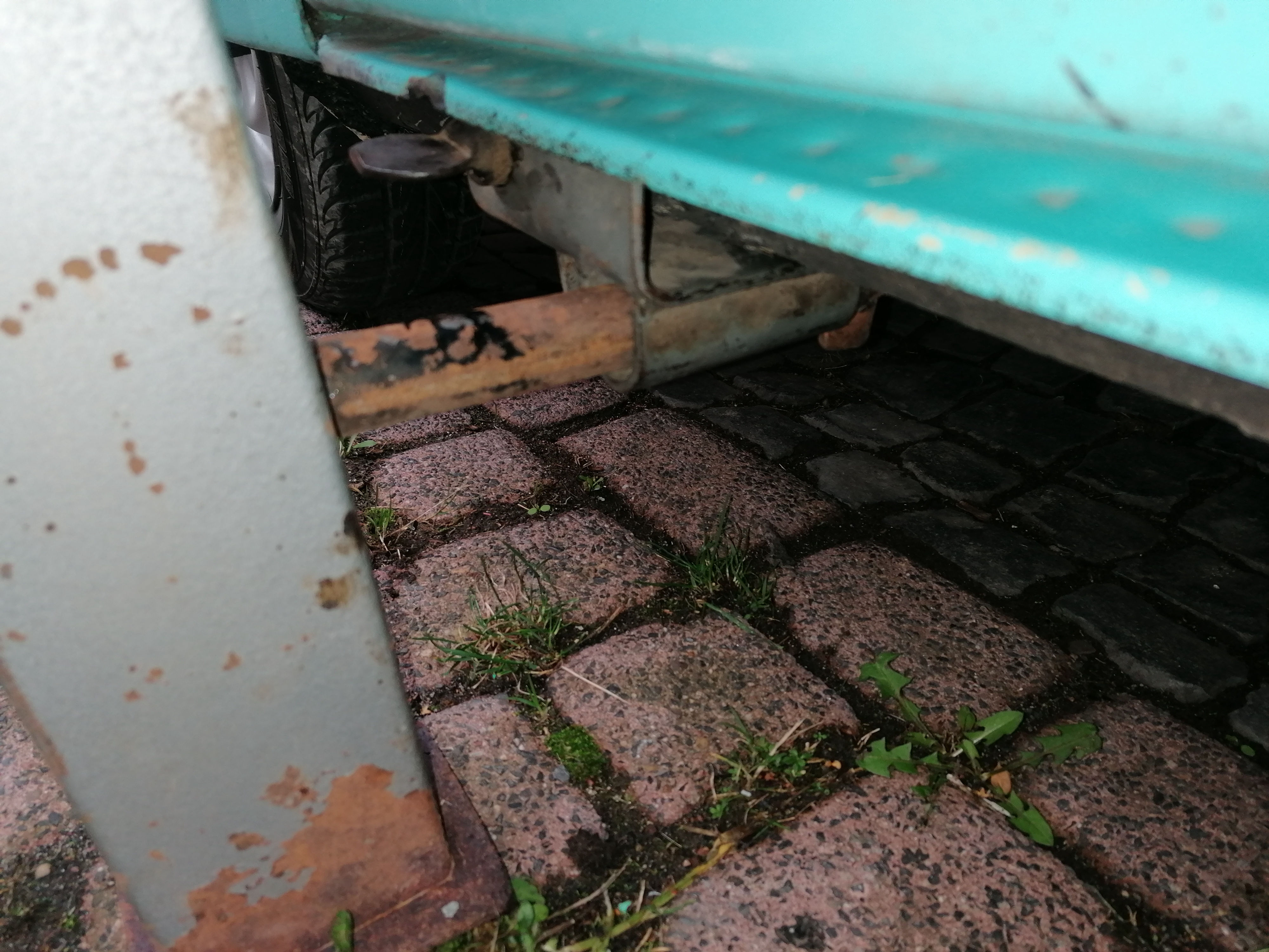 Bevor Ihr den Trabi auf die Seite dreht sollte der Tank nur noch zu 1/3 (ca.7,5l) befüllt sein