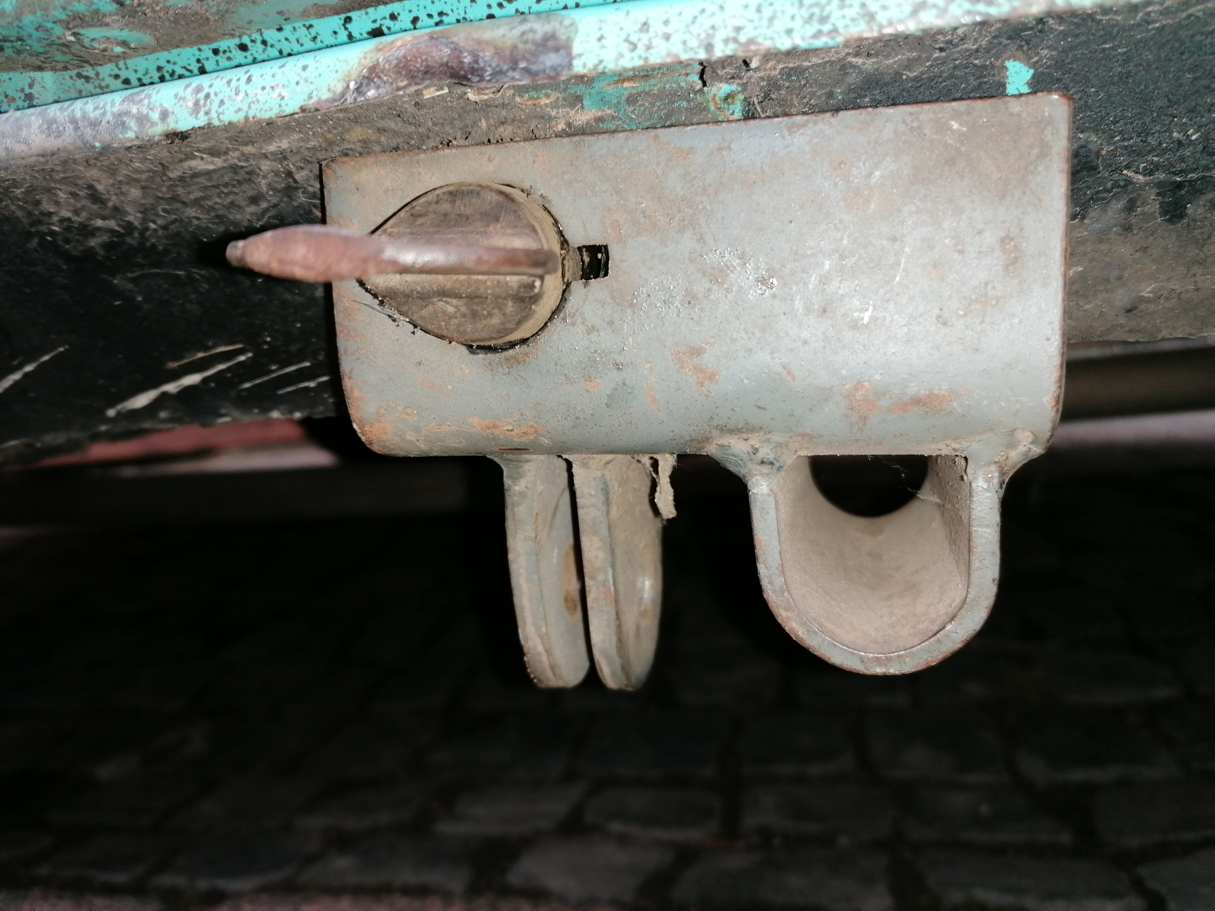 Vergesst an der Hebesäule nicht den Verriegelungsbolzen.