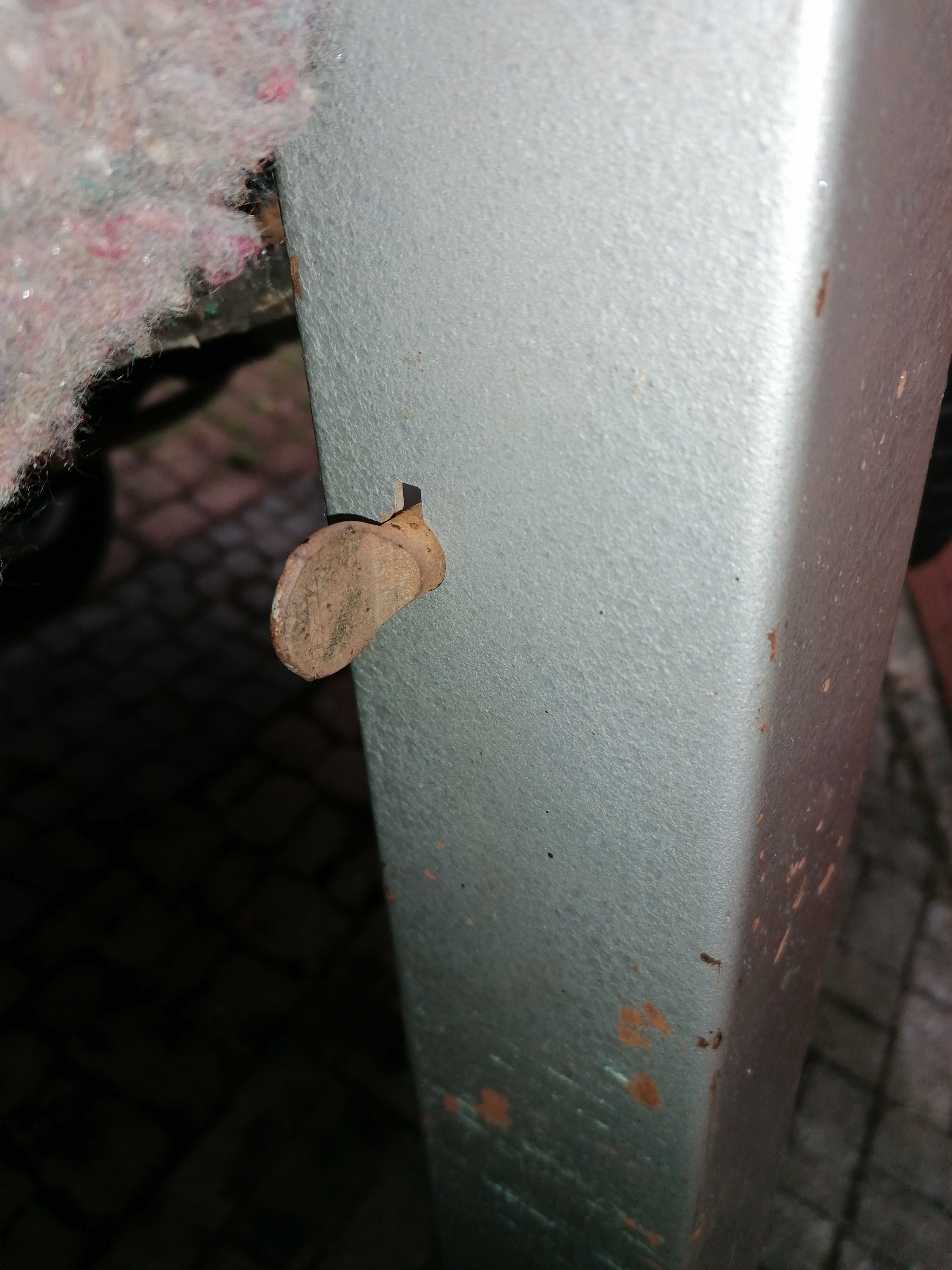 Die Gelenkstücke werden auf der Seite, die unten bleiben soll befestigt. Der Bolzen sollte um 90 Grad gedreht werden zum verriegeln.