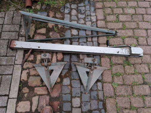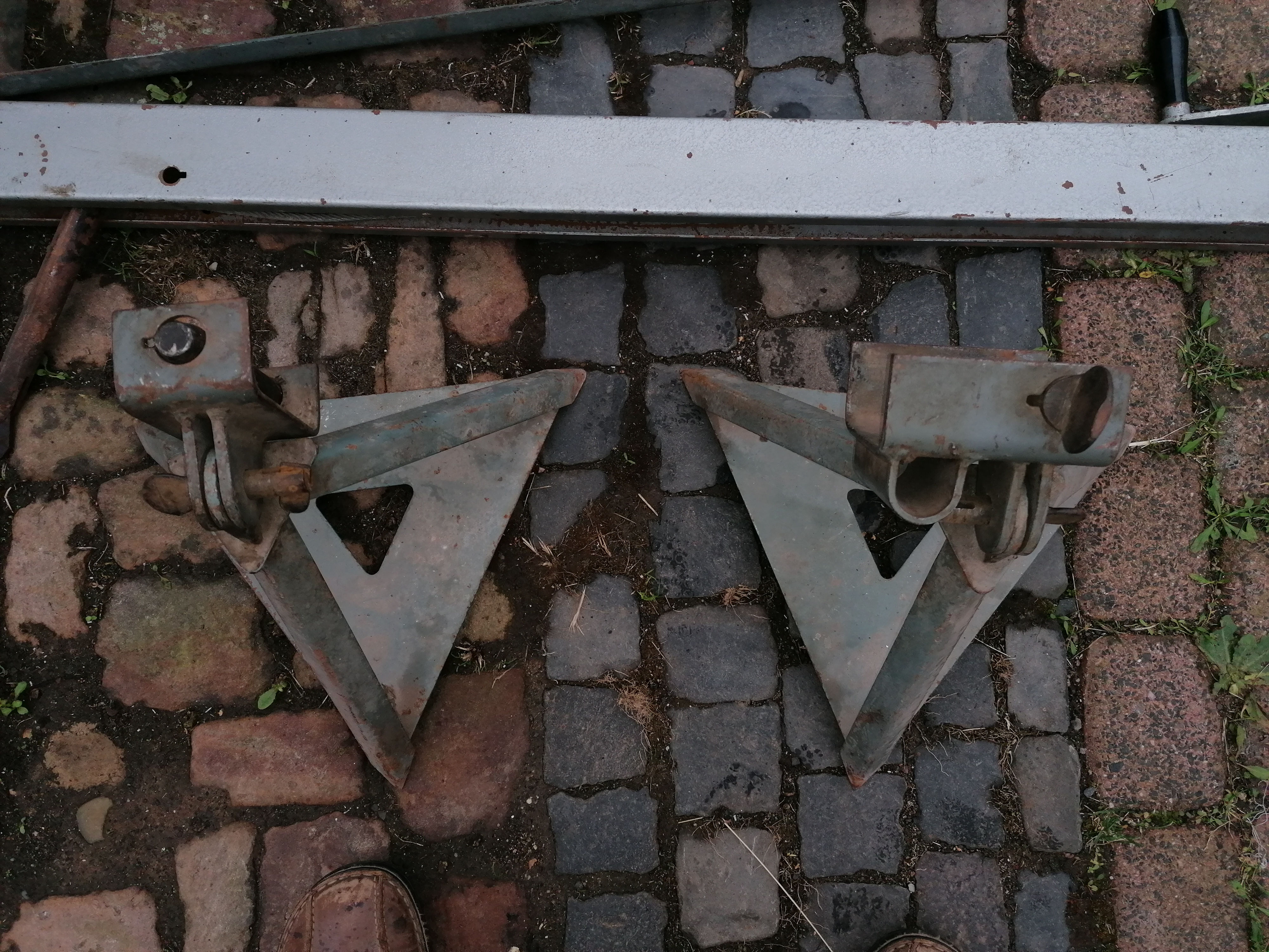 Jetzt wird es etwas Kniffelig, die Hebesäule in das vordere Gelenkstück einführen. Dabei ist zu beachten das der Fuß der Hebesäule soweit wie möglich nach hinten kommt, damit man das Dreibein noch befestigen kann.